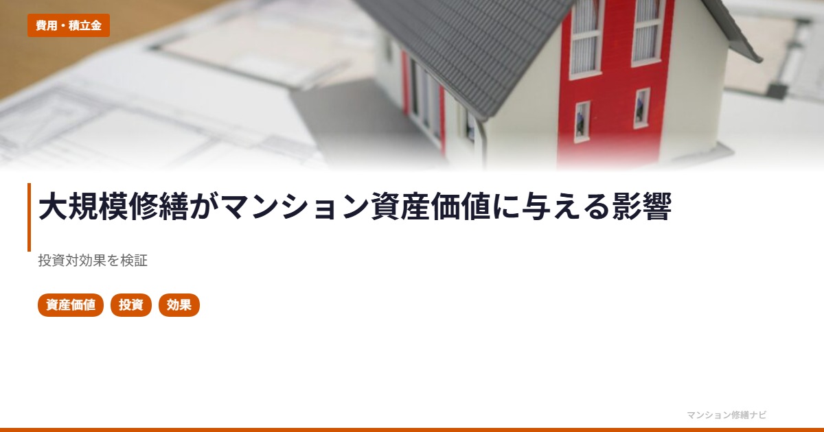 「大規模修繕にお金をかけても、マンションの価値は上がるのか?」——管理組合の理事や住民からよく出る疑問です。結論から言えば、適切な大規模修繕は資産価値の維持に不可欠であり、修繕を怠ったマンションは確実に市場価値が下がります。本記事では、修繕と資産価値の関係を具体的に解説します。