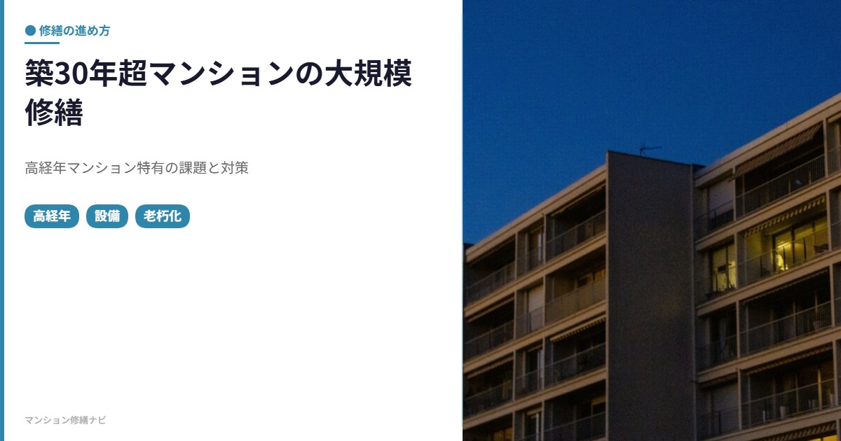 築30年超のマンションの大規模修繕は、1回目とは質・量・費用のすべてが異なります。早期から現状を把握し、住民と情報を共有しながら、計画的に取り組むことが建物の長寿命化と資産価値の維持につながります。