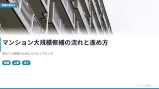 修繕の進め方 マンション大規模修繕の流れと進め方 「大規模修繕って、何から始めればいいのかわからない」「気づいたら業者に言われるままに進んでいた」――そんな経験をお持ちの管理組合の方は少なくありません。大規模修繕は着工から逆算すると、準備に最低でも1年〜1年半が必要なプロジェクトです。全体... 2026年03月31日 修繕の進め方