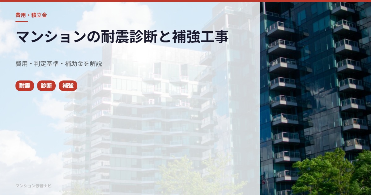 築30年以上のマンションの場合、大規模修繕のタイミングで耐震診断・補強工事を検討する管理組合が増えています。理由は、外壁や防水の修繕工事と同時に実施することで、工事の効率化と費用削減が可能だからです。